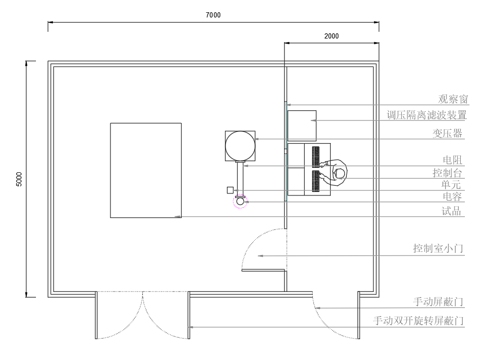 > 屏蔽室能夠滿足新產品實驗室用的外施耐壓、局部放電的測定